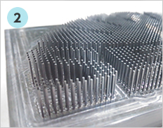 一枚の板からピンを堀残しています。 ピンは□0.6mm、長さ10mm、2296本になります。